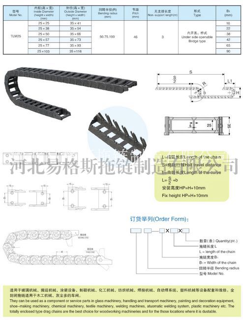 TLM25系列橋式內(nèi)開蓋拖鏈